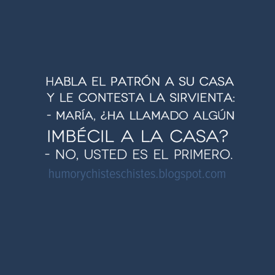 Llama el señor a su casa y le contesta la sirvienta: – María, ¿ha llamado algún imbécil a la casa? – No, usted es el primero.